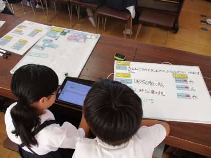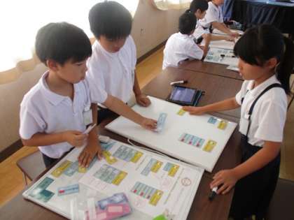 後半は、計算をさせるプログラミングを習いました。ペッパー君はどんな計算も一瞬でしてくれます。それにびっくりした子どもだちは、すごく大きな数字で計算してもらっていました。でも、だれも答えはわからないので、ぽかーんとした顔でした。算数の問題を出し答えを教えてくれるプログラミングを考えたところで今日は終わりました。次回も楽しみですが、ちょっとずつ難しくなってきました。