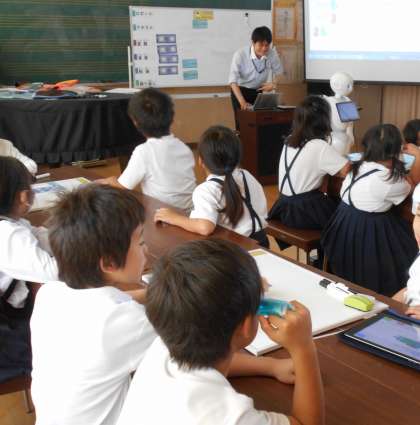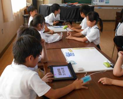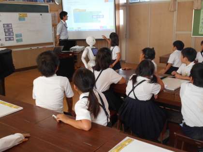今回のプログラミング学習は、グループで考えた文章問題を、ペッパー君に答えてもらう学習をしました。少しずつ慣れてきたせいか、早く仕上げるグループが出てきました。ペッパー君が動いて答えると、拍手が起こりました。あと3年生は1回あります。