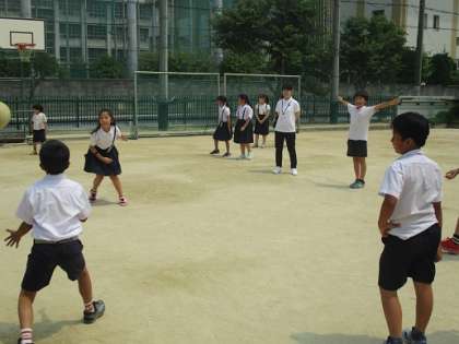 最終日だったので、お昼休みのみんな遊びに来てくれました。男女に分かれてドッヂボールをしました。汗をたくさんかきながら、みんなで楽しく過ごせました。どうやらドッヂボールは苦手だったみたいです。