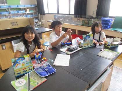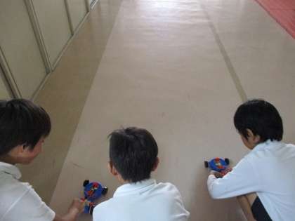 今日はモーターカーを組み立てていき、走らせることができました。一つ間違えると進まなかったり、逆に進んだりしてしまいます。最初はいろんなところで「あれ?動かない」という声が聞こえてきましたが、最後にはみんな廊下で走らせることができました。