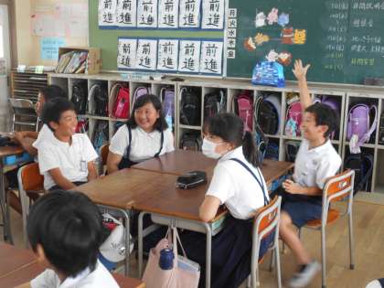 今日はジョン先生が来てくれました。今日が1学期最後の授業です。最後だったので、みんなでゲームをしました!班で協力してゲームに取り組み、みんな大盛り上がりでした!次は9月に来てくれるそうなので、また楽しく進められたらいいなと思います!