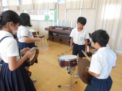 音楽の学習で「リズムアンサンブル」をしています。一人ひとり楽器やリズムを選び演奏します。それを班のみんなで合わせていきます。班のみんなで合わせることの難しさや、みんなで合わせられた時の楽しさを味わってくれたらいいなと思います!来週発表会をします!どんなリズムアンサンブルができるかな〜♪