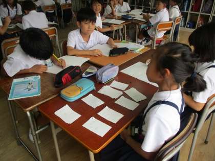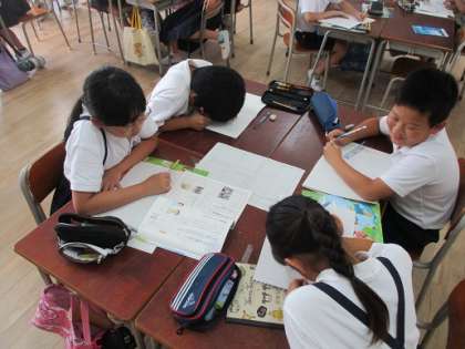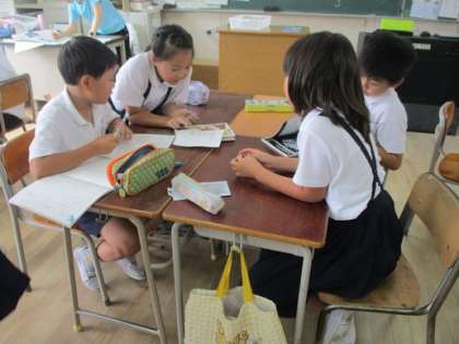 4年生では毎日新聞づくりに没頭しています。何を書くかが決まり、本格的に記事を書き始めています。書く前も、書いている途中も、書いた後も班で相談しています。いい新聞が作れたらいいですね。