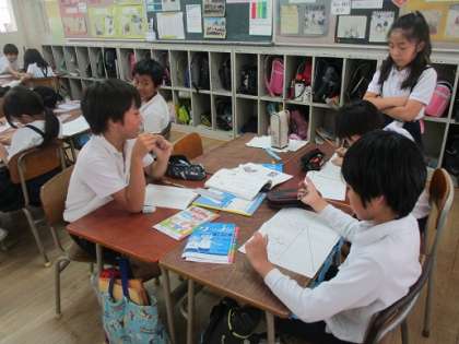 「新聞を作ろう」も、いよいよ記事の内容も決まりました。書き終わった子も多く、他の子の手伝いもしています。明日からいよいよ新聞の形にしていきます。完成を楽しみにしておいてください!!