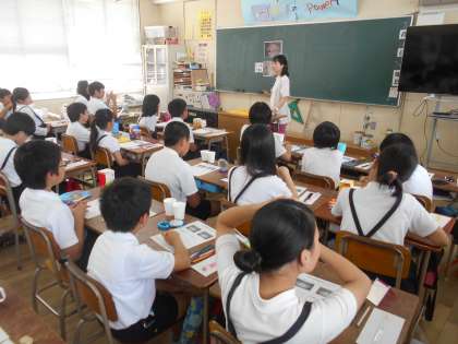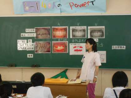 火曜日の3時間目に歯科衛生士の方々が来られ、歯についてお話をしていただきました。
