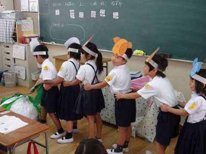 国語科で「おおきなかぶ」を学習しました。「おばあさん、ちょっときておくれ。」「いいですよ、おじいさん。」と、それぞれ登場人物になりきって、せりふを考えていました。みんなが笑顔の劇ごっこになりました。