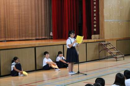 1学期の思い出作文は3・6年生が発表しました。できるようになったことや楽しかったことについて、みんなの前で話していました。