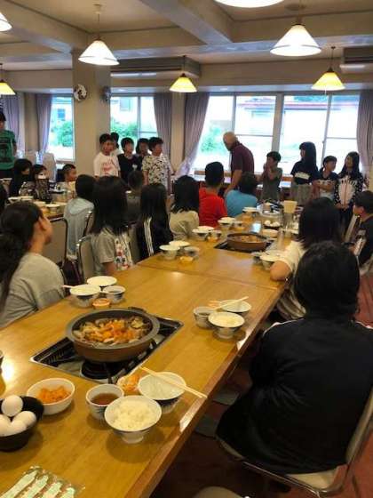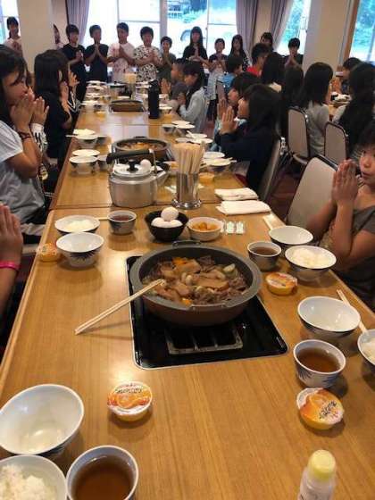 今晩のメニューはすき焼きです。協力して準備して「いただきます」