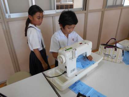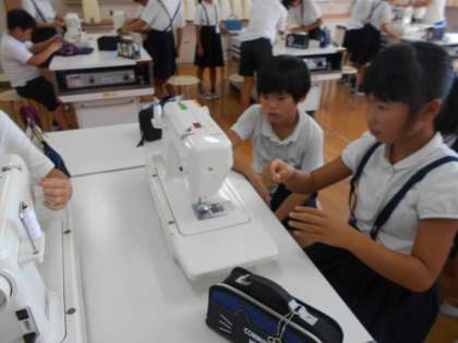 家庭科の学習でミシンの練習をしました。ミシンに糸を通すだけでも一苦労です。今回は、糸無しで空縫いにチャレンジしました。これからどんどん練習して上手に使えるようになってほしいです。