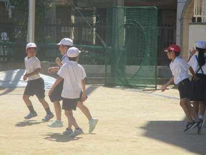 今日は久しぶりにみんな遊びを行いました。暑い中、走り回っている姿が印象的でした。熱中症に気を付けて遊び方も工夫していこうと思います。