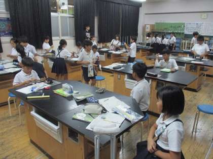 理科で「空気と水」の学習をしていました。「空気や水を閉じ込めるとどうなるか」など、予想を立て実験をし楽しく活動していました。これからも、いろいろな実験が続くようです!!