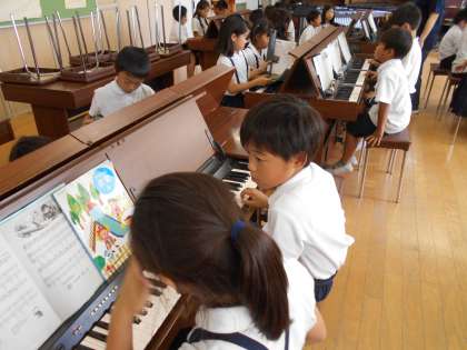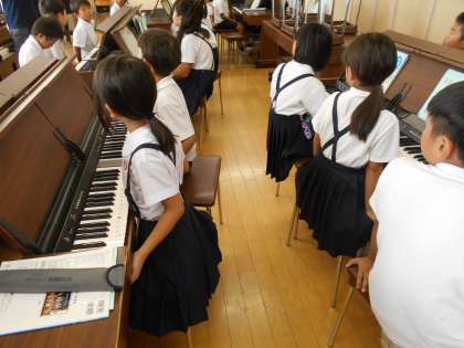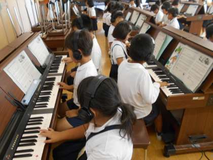 3時間目の音楽の時間は、オルガンの練習をするために、音楽室へ行きました。グループで座り、個人練習しました。ヘッドホーンを使い、自分の引いた音を聞きながら練習しました。次回は鍵盤ハーモニカで練習します。