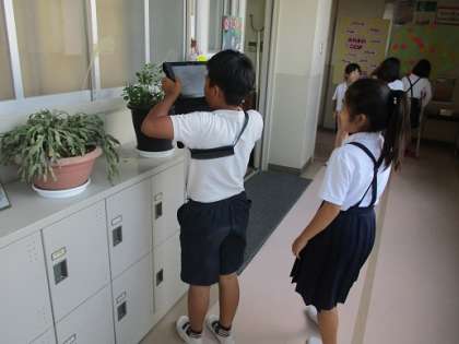 図工の学習で「すみですみか」という単元をし始めました。学校にある「すみ」にある「すみか」になりそうなところを探して写真を撮るのが今日の課題でした。次回は「すみか」の住人作りです。