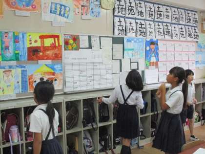 出来上がった「わすれられないあの時」の絵を、みんなで見ました。それぞれの絵を鑑賞して、いいねのコメントを書いて回っていました。チャイムが鳴るまで20分間ぐらい、次から次へとコメントを書いてあげていました。書く手は止まらなかったです。みんなに褒めてもらえると次へのやる気ににもなるし、ほかの子の絵からアイデアももらっていました!!