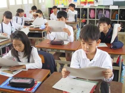 学校アンケートの結果が配布されました。「アンケートって何のためにするんやろ?」と問いかけ、自分たちが変えていけそうなこと・がんばれそうなことを考えました。みんなから出てきたことは「基本的な生活習慣を身につけること」と「健康に気をつけて生活すること」でした。頑張ることがはっきりしたことで、少し意識が変わったように思います!!