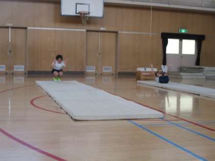 マット運動のテストをしました。練習してきた技から3つ選んでみんなの前で披露しました。1つ1つの演技が終わると、拍手がありました。みんなしっかりと練習の成果が出ていたと思います。