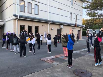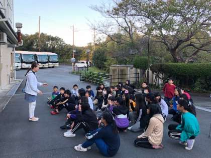 眩しいくらいの朝日の中、全員元気に2日目の活動開始です。