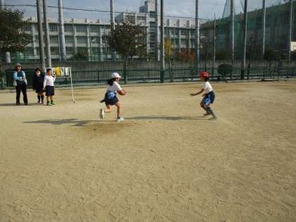 2回目のタグラグビーは、少しラグビーの動きになってきました。ボールをもってかけぬける攻撃と、動きを止めタグを取る守備に分かれて1対1で練習しました。1組と2組に分かれて取り組んだ結果、2組の勝ちでした!!