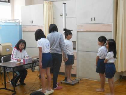 高学年から順番に発育測定が行われています。病気にかからないように、毎日をどのように過ごし、どのようなことに気を付けるかをみんなで考えました。自分の健康のために、できることは丁寧にしていきたいとみんな考えていました!!
