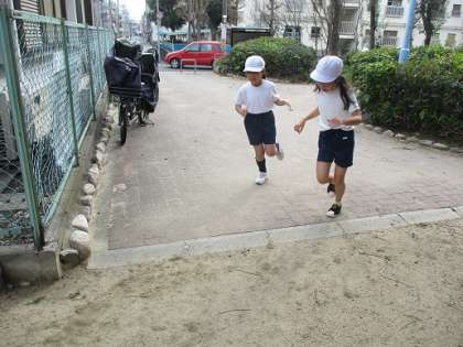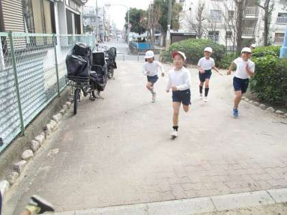 金曜日にかけ足大会がありました。5・6年生に一生懸命ついていけるように走りました。速い子は7分ぐらいで走り切りました!!