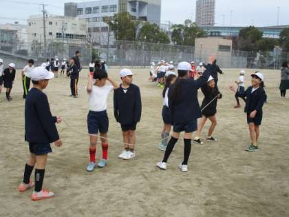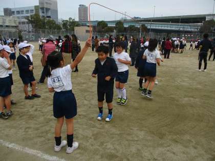 耐寒かけ足大会後に、大なわの練習をしました。学校に帰ってきた後も、運動場で練習しました。
