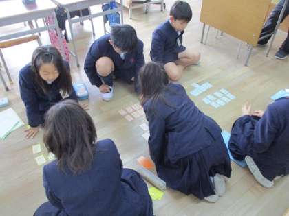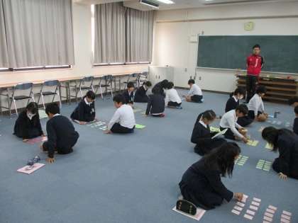 冬休みの宿題にしていた「百人一首」。いよいよ「競技カルタ」の大会を始めました。覚えている子が多く、最後の一枚まで白熱しています!!休み時間も、いろいろなところで百人一首が行われています。