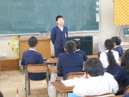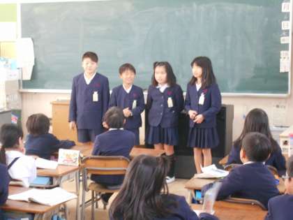 国語の時間に、短い話を一人で読んだり、グループで読んだりしました。照れている子もいましたが、しっかりと読めました。