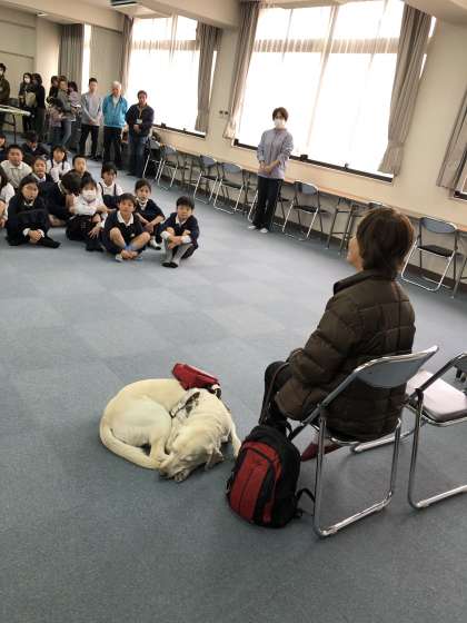 3年生は、盲導犬についてのお話しを実際に盲導犬を連れてきていただいた方にいろいろとお聞きすることができました。知らなかったこともいっぱいあって、みんな真剣に聞いていました。