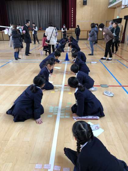 4年生は、この日に向けていっぱい覚えてきた百人一首大会です。上の句の初めを読んだだけでとる人も多く、さすが練習を重ねてきた成果だなと感心しました。