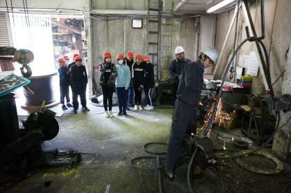 中村工業では、実際の作業を見せていただき、ワイヤーを作るのにたくさんの時間と力がいることを知りました。また、ワイヤーを作る作業をさせていただき、子どもたちもうれしそうな表情でした。