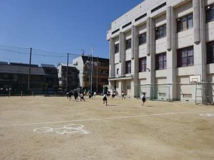 久しぶりの学校です。友だちと一緒に運動場で力いっぱい走って楽しみました。