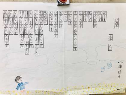 6年生の国語の教科書、最初のページの「いのち」の詩を、丁寧に写しましょう。