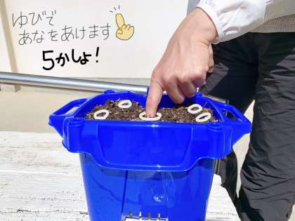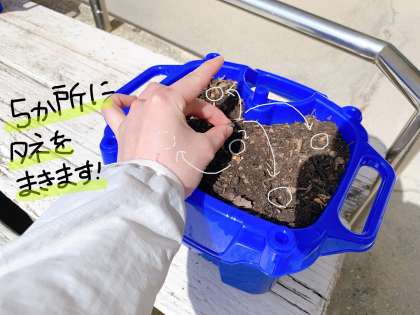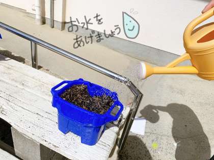 先週の金曜日,みんなより一足先に朝顔の種をまきました。みんなも学校に来たら,いっしょに朝顔のたねをまきましょうね☺楽しみにしています。