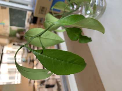 教室にあるアゲハチョウの卵がかえり幼虫になっていました。様子を見に来た子どもたちは「すごく小さいな」とその小ささに驚いていました。これからいっぱい葉っぱを食べて大きくなっていくので次登校した時は今日よりも成長していると思います。毎回登校した時に見てね。