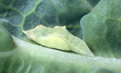 学習園のモンシロチョウのさなぎはうっすらと羽の色が見え始めました。もうしばらくすると「ちょう」になって大空に旅立っていくと思います。