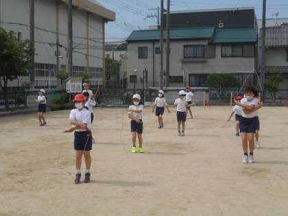 いつもより楽しそうにしていたように思います。運動不足なところも見せずに、体を精一杯動かしていました。縄跳びで準備体操をした後に、今日は「走る」練習をしました!!いっぱい体を動かせたのがよかったみたいで、早くも「スポーツテストしたいな」と話している子もいました。次回の体育の時間もお楽しみにー。