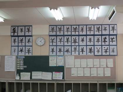 書写を掲示しました。どれが自分のか聞いてみてください。