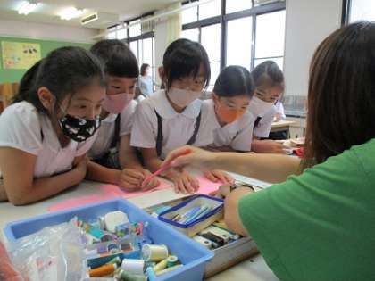 今年から始まって、毎週楽しみにしているクラブ活動の様子を見て回りました。それぞれのクラブで、初めての体験がいっぱいで目がキラキラしていました。今日は、理科工作クラブと家庭科クラブの4年生の様子です。