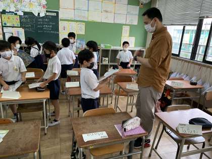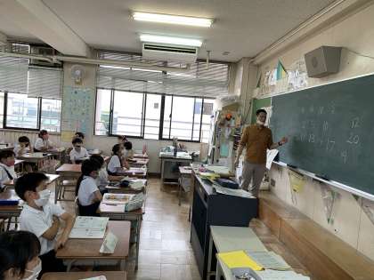 先週金曜日の外国語活動はラフィ先生が来られました。今回は数字の言い方や気分の聞き方を学びました。みんな楽しく英語を学習しています。