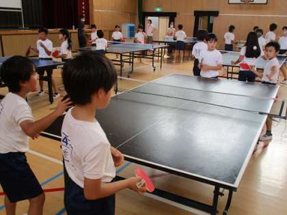今回は体育館で行っている「バドミントンクラブ」と「卓球クラブ」です。いっぱい汗をかいて楽しんでいました。失敗しても笑顔で楽しく活動することができていました。