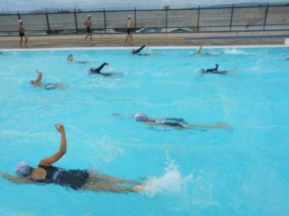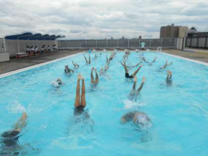 今日は水慣れの時間に、前転や後天、逆立ちをしました。