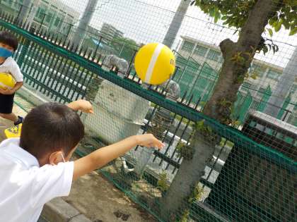 1年生も積極的に参加しており,「(ボールを)いっぱいなげれた!」「(ジャングルジムのくぐり抜けを)6ねんせいより,はやくできた!」と,嬉しそうに話していました。