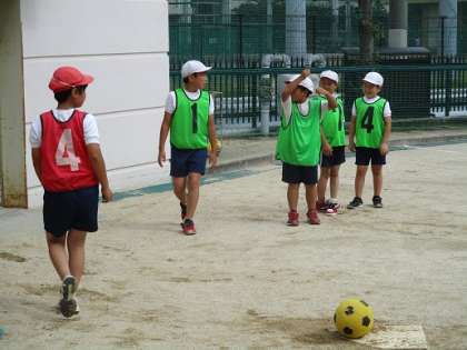 ボールゲームクラブがキックベースをしているところと、室内遊びクラブが大富豪をしているところを見学しました。5・6年生に囲まれながらも、リラックスして楽しそうに過ごすことができていました。