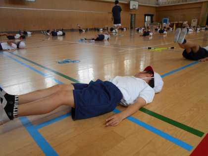 体育の時間は、いろいろな準備運動をしますが、今日は、足上げやお腹を上げることもしました。そのあとは、ボールの投げ方を練習して、ドッジボールをしました。ボールが増えていくので、よく見ていないとあてられます。みんな楽しく活動できました。