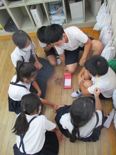 昼休み開始から5分経つと、そんな雰囲気も消え、教室のいろいろなところで楽しそうに遊ぶ様子がありました。男女関係なく遊んでいたり、男子らしい・女子らしい遊びで盛り上がっている様子もありました。