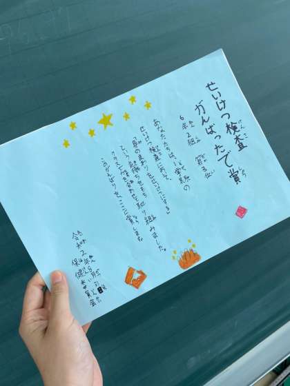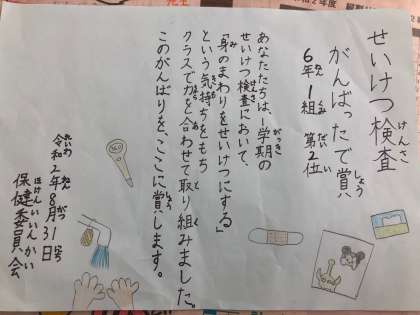 今日の朝会で、保健委員さんから1学期の清潔検査の結果発表がありました。