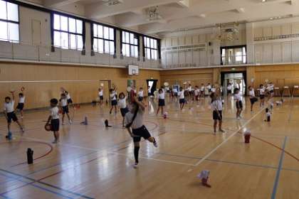 去年の曲よりテンポが速く、難易度がアップしました。それでも【元気よく】【かっこよく】踊るのを目標に練習をがんばっています。まだまだ練習は始まったばかりですが、上手な子の覚える速さには驚かされます。「自分だけ」ではなく「みんなで」を目指して頑張りましょう。