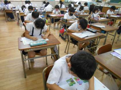 5時間目の国語は書写をしました。よい姿勢、鉛筆の持ち方を確認してから、書写ノートを書きました。ひらがなとカタカナをなぞってから下に書いてきました。丁寧に書くことができました。