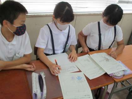 「すみですみか」のアイデアが出そろいました。みんな、考えることを楽しんでいましたね。最後に自分が考えたものをグループ内で発表し、作るものを決めました。次回はいよいよ実際に作る作業です。どんなものができるか本当に楽しみです!!