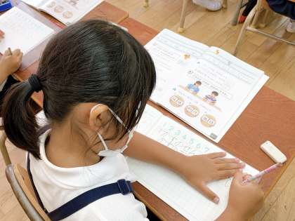 授業中の姿勢も美しく,ノートに書く字も素早く丁寧で,集中して学習に取り組めるようになってきました。国語では,漢字の学習も始まっています。